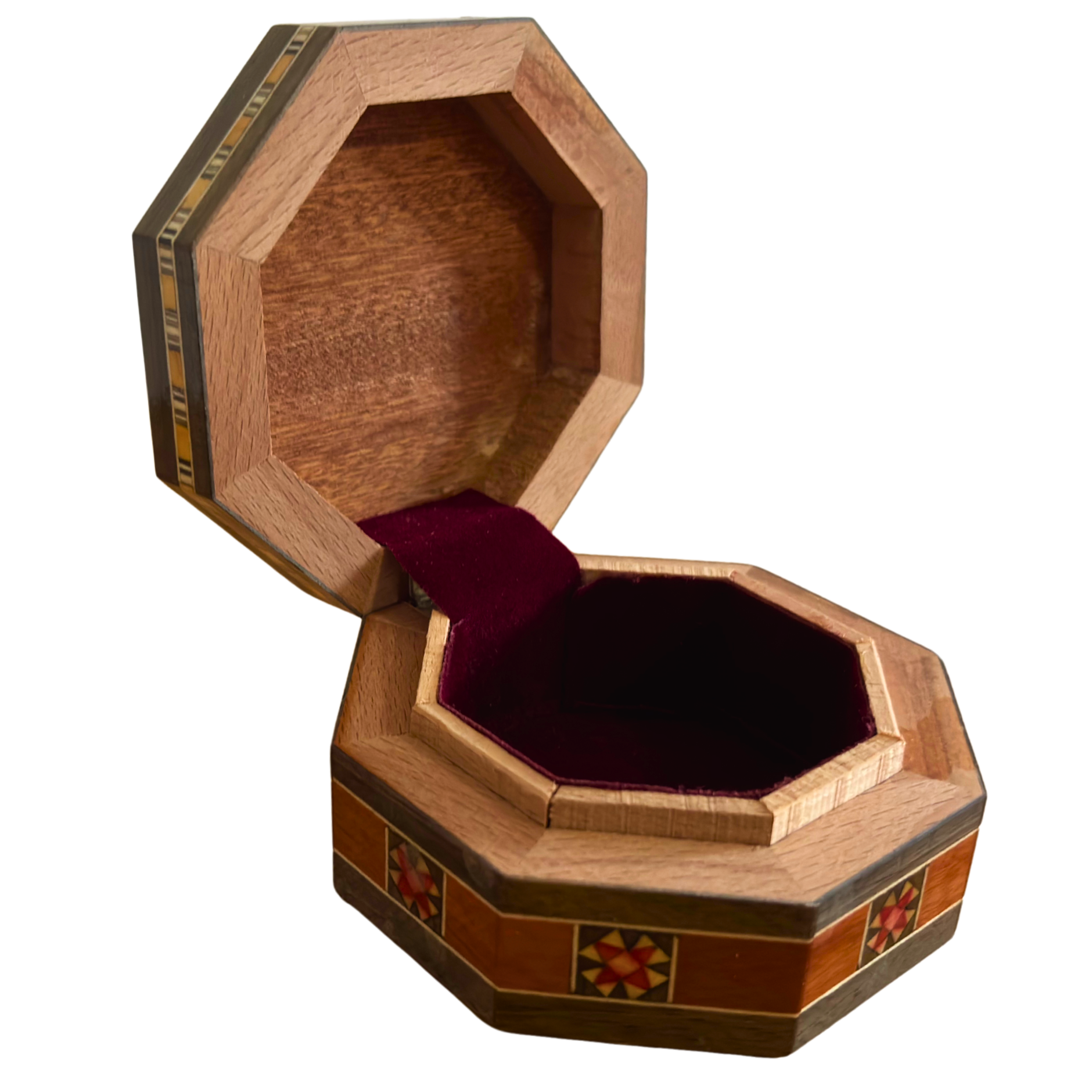 صندوق موزاييك ثماني صغير، صندوق دمشقي مصنوع يدويًا، صندوق مجوهرات من صدف اللؤلؤ، تذكار شرقي، صندوق خشب جوز، فكرة هدية فريدة، صندوق خشبي حرفي، فن موزاييك، صندوق دمشق، صندوق سوري، هدية لها، هدية له