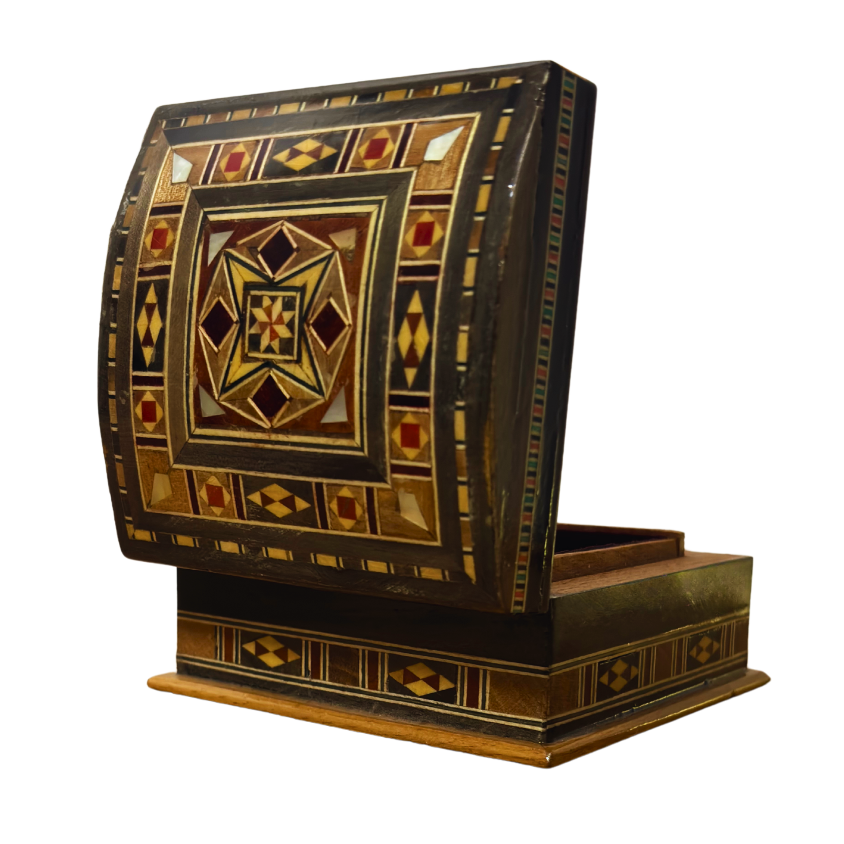 Caja de Mosaico Artesanal de Damasco – Arte Tradicional y Interior de Terciopelo