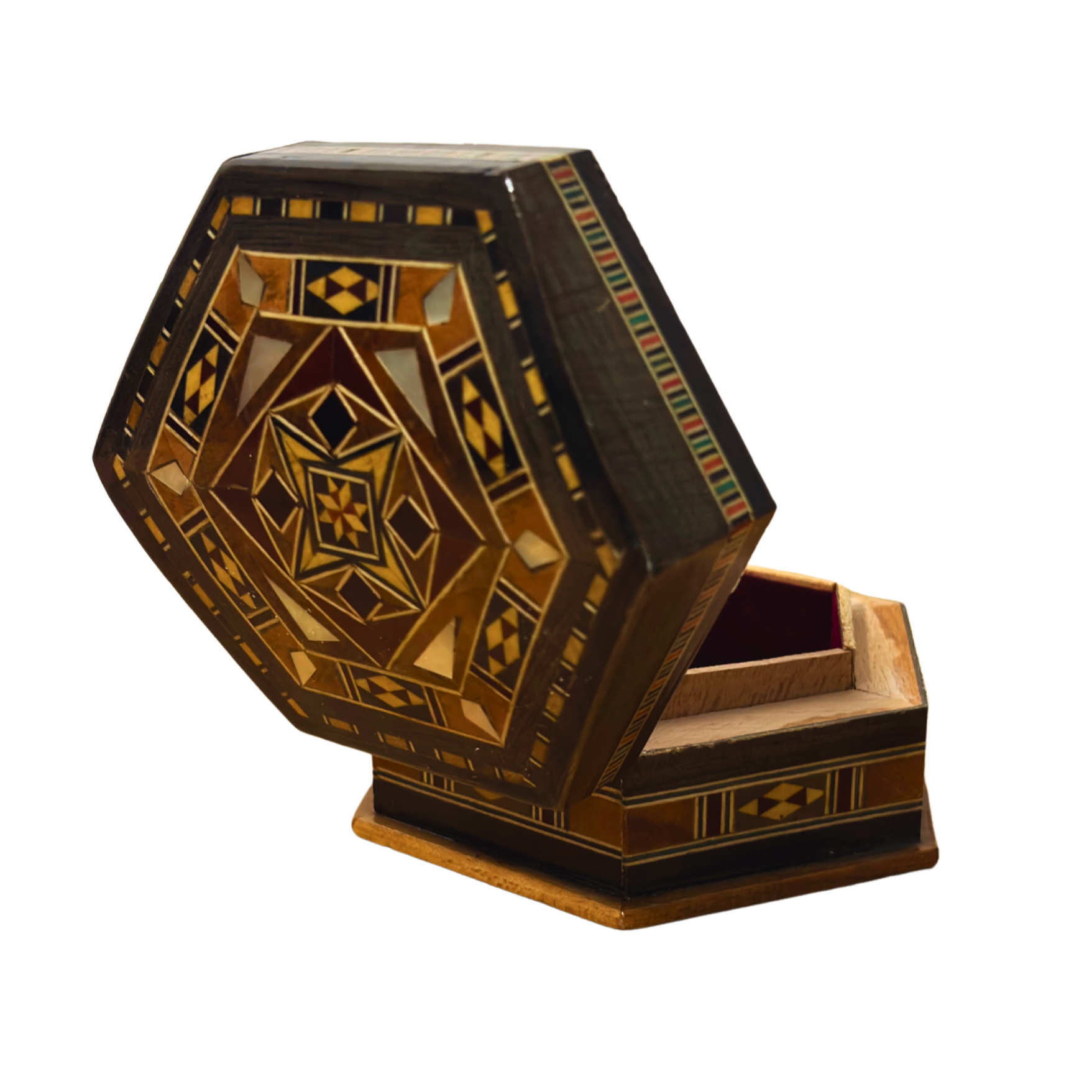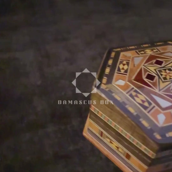 caja de mosaico, mosaico de damasco, caja hexagonal artesanal, artesanía siria, regalo hecho a mano, Damascus Box