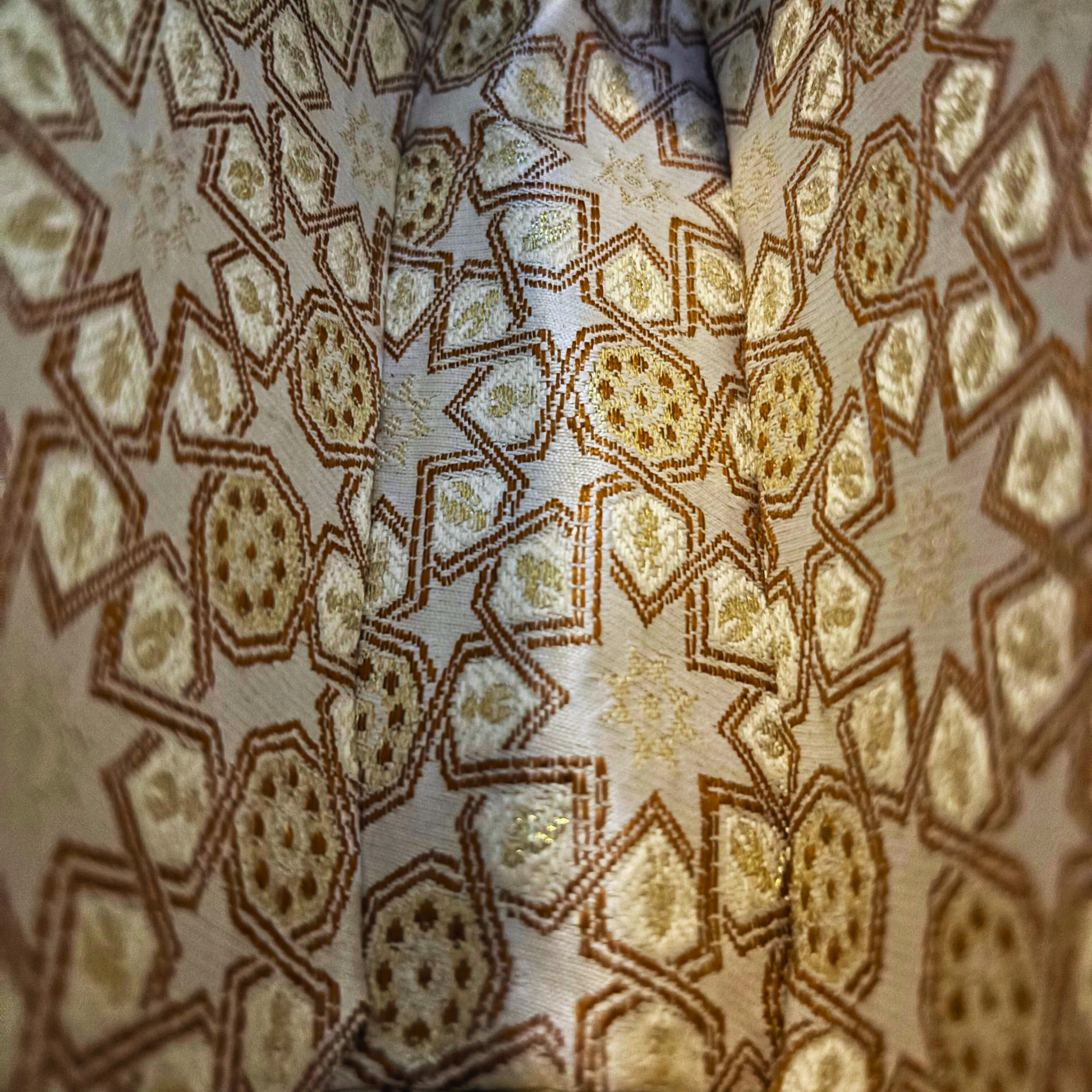 Wnętrze z bogatego damasceńskiego brokatu dodaje królewskiego charakteru i kulturowej głębi.