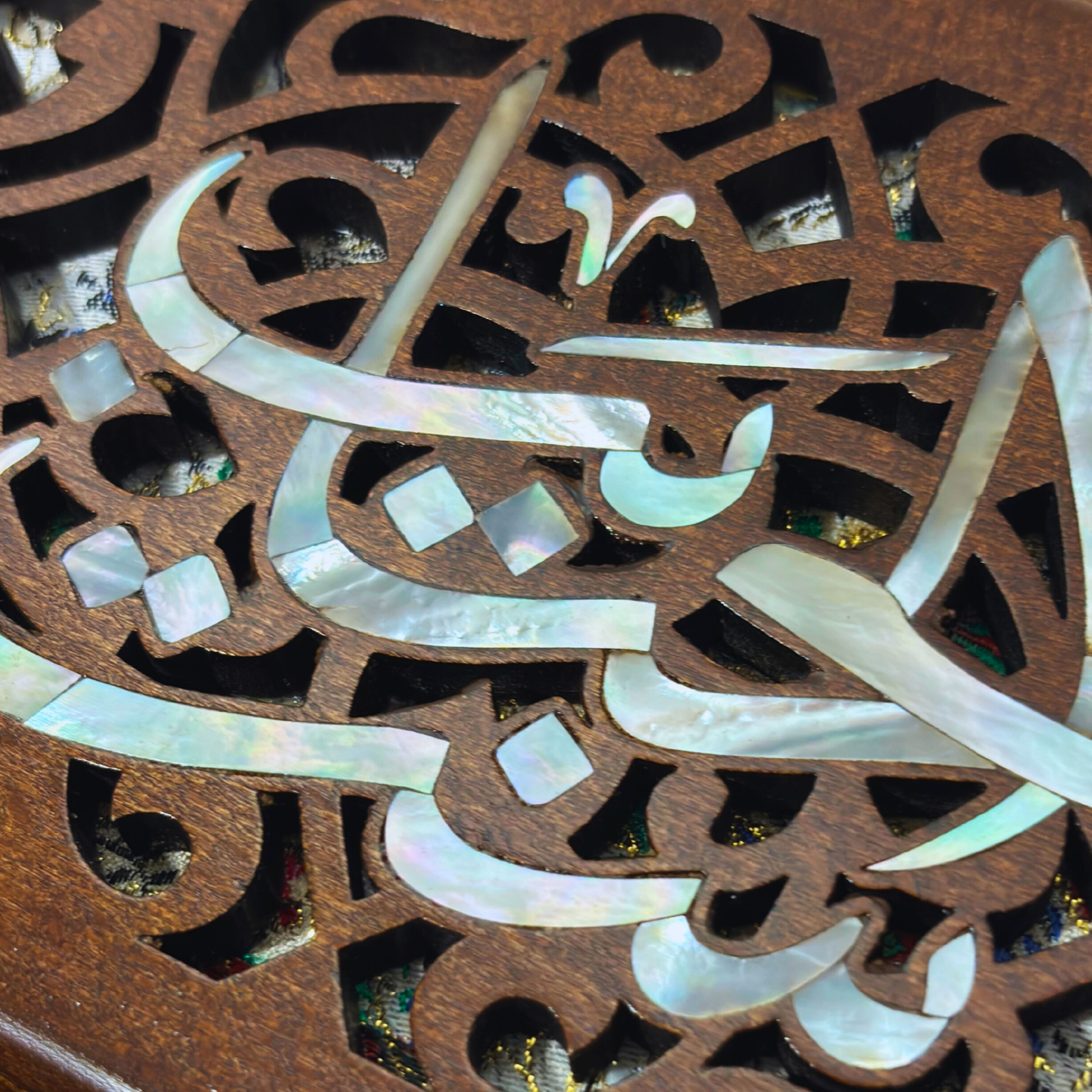 • Materiały: Drewno orzechowe, masa perłowa, brokat damasceński, odpinany łańcuszek