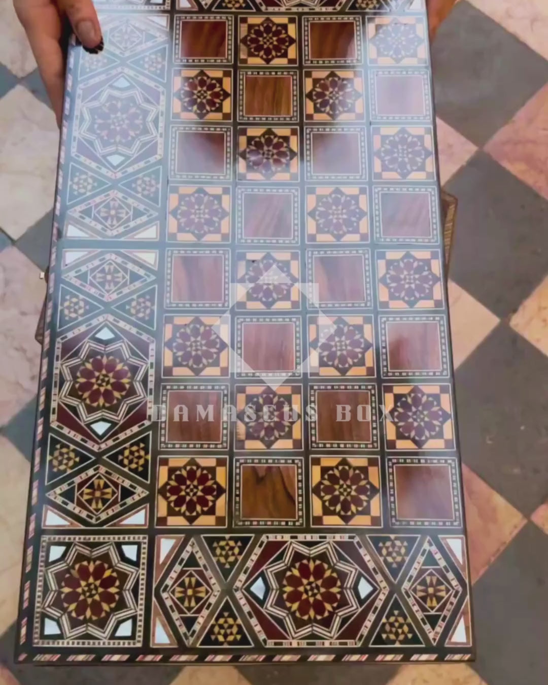 Ponadczasowy kontrast czerni i bieli podkreśla piękno planszy, zachowując klasyczny charakter tradycyjnej gry.