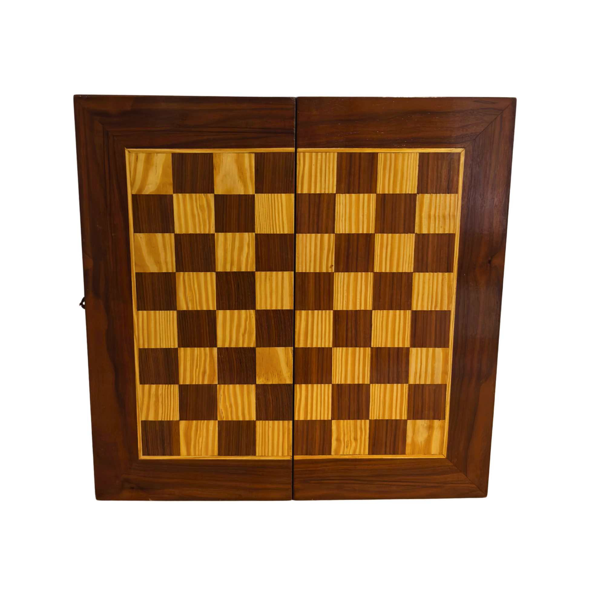 Zestaw zawiera drewniane pionki do szachów i backgammona oraz kostki – idealnie dopasowane do stylu stołu.