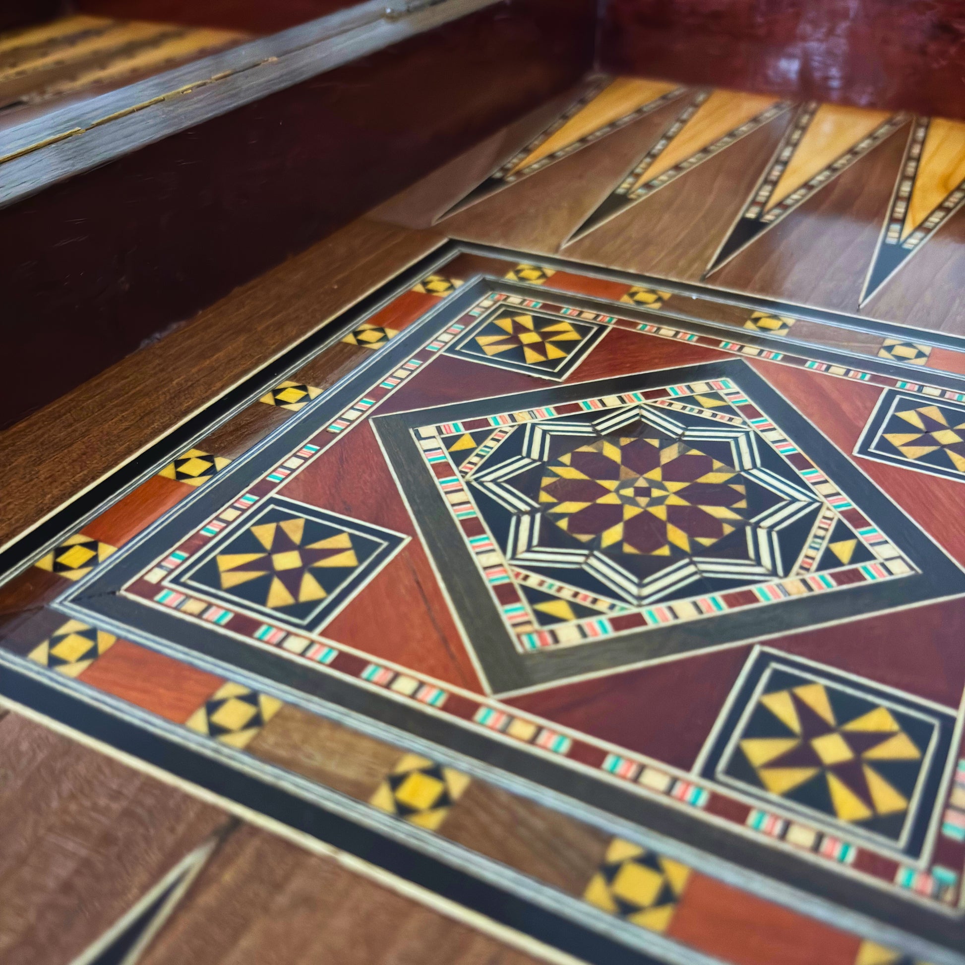 Ręcznie Wykonany Damasceński Stół do Szachów i Backgammona od Gaby Al Dayeh – Klasyczny Wzór Mozaiki