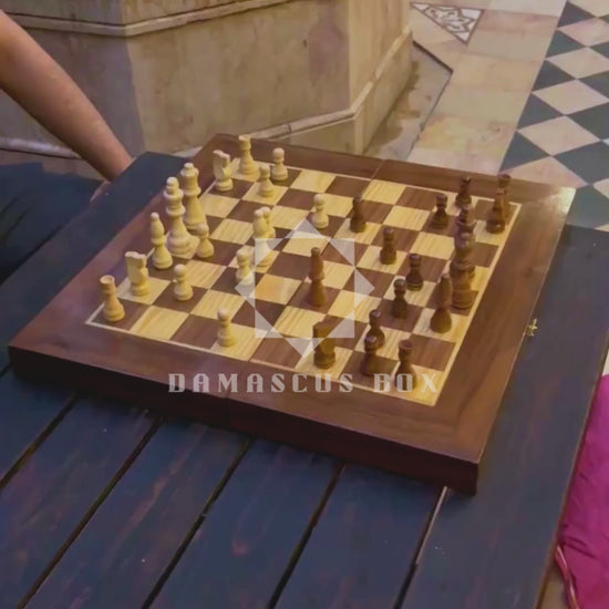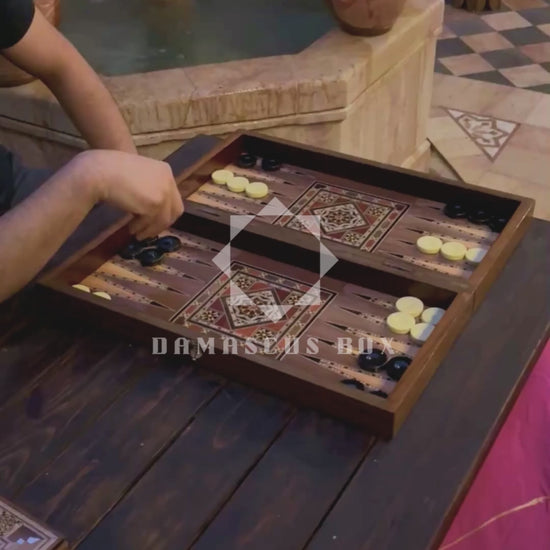 Zewnętrzna część przedstawia klasyczną szachownicę, a wnętrze odsłania piękny damasceński wzór mozaiki — hołd dla wiekowego rzemiosła Syrii.