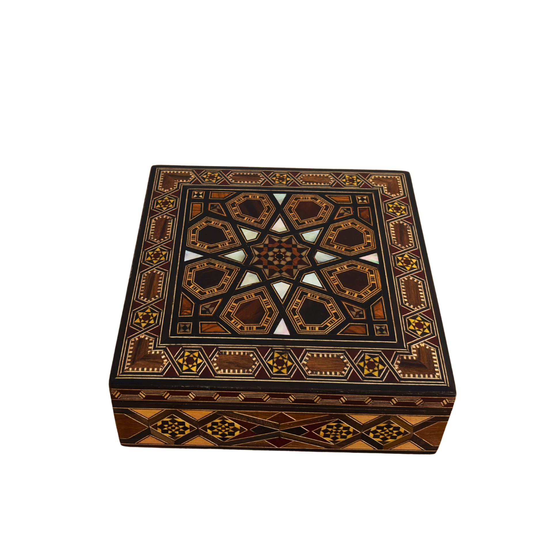 Caixa de Mosaico Damasquina Feita à Mão pelo Mestre Gaby Al Dayeh – Madrepérola e Veludo