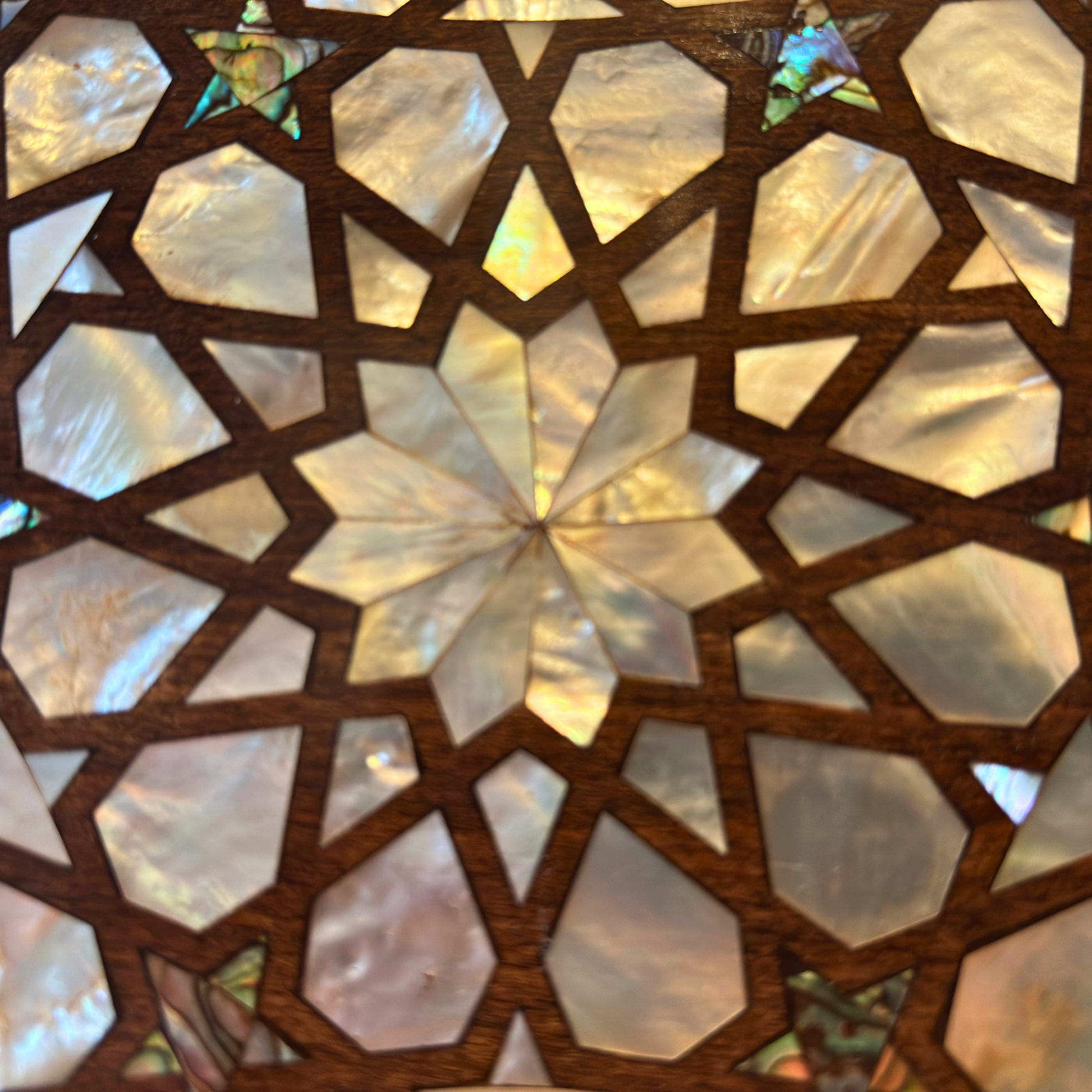 Feita em madeira de nogueira premium e decorada com padrões estrelados em madrepérola, representa o equilíbrio entre arte e tradição.