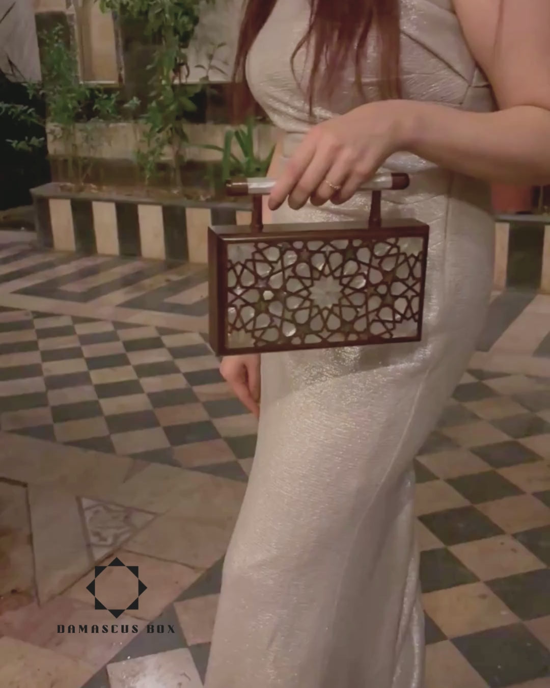 Cada bolsa é feita à mão em Damasco, refletindo séculos de arte e elegância.